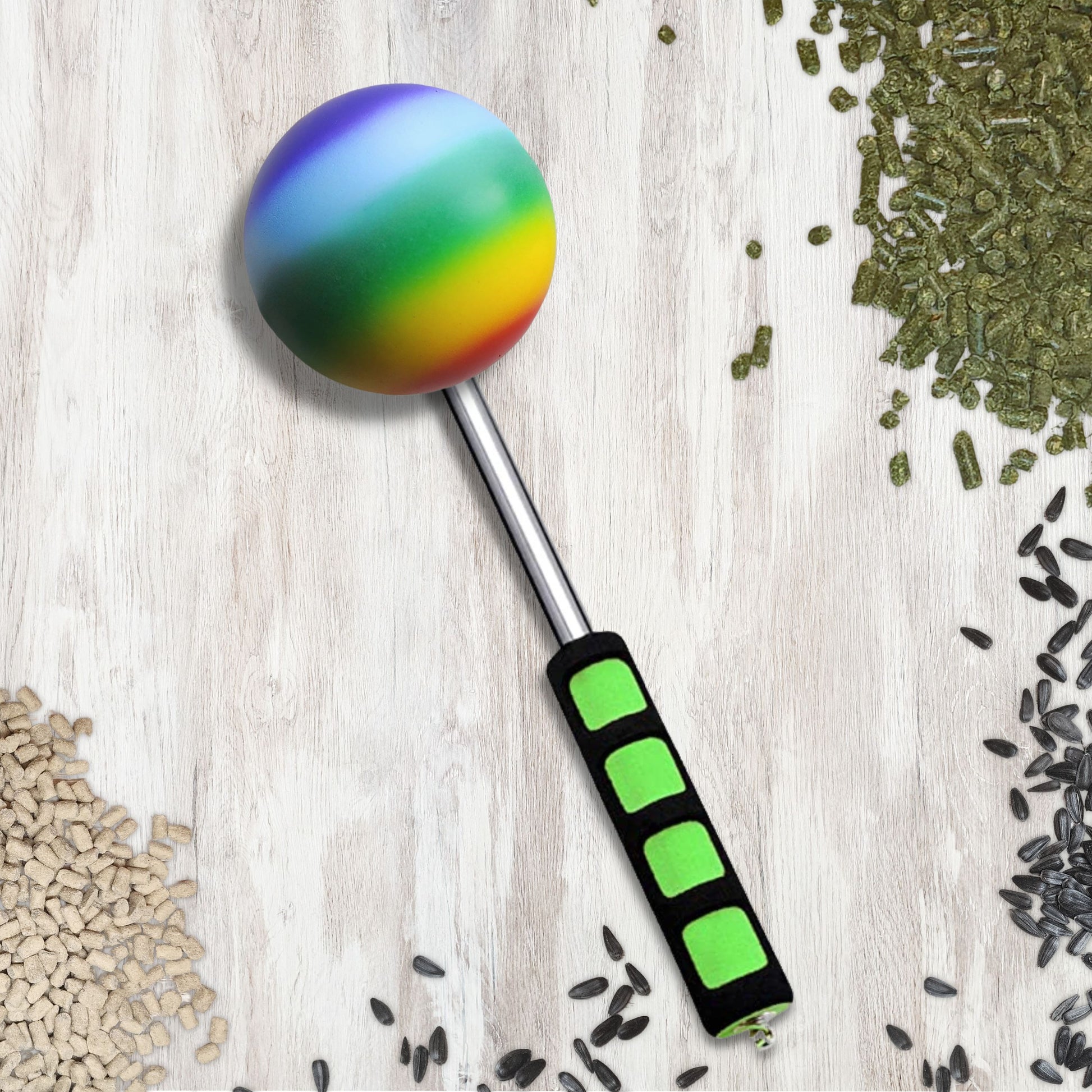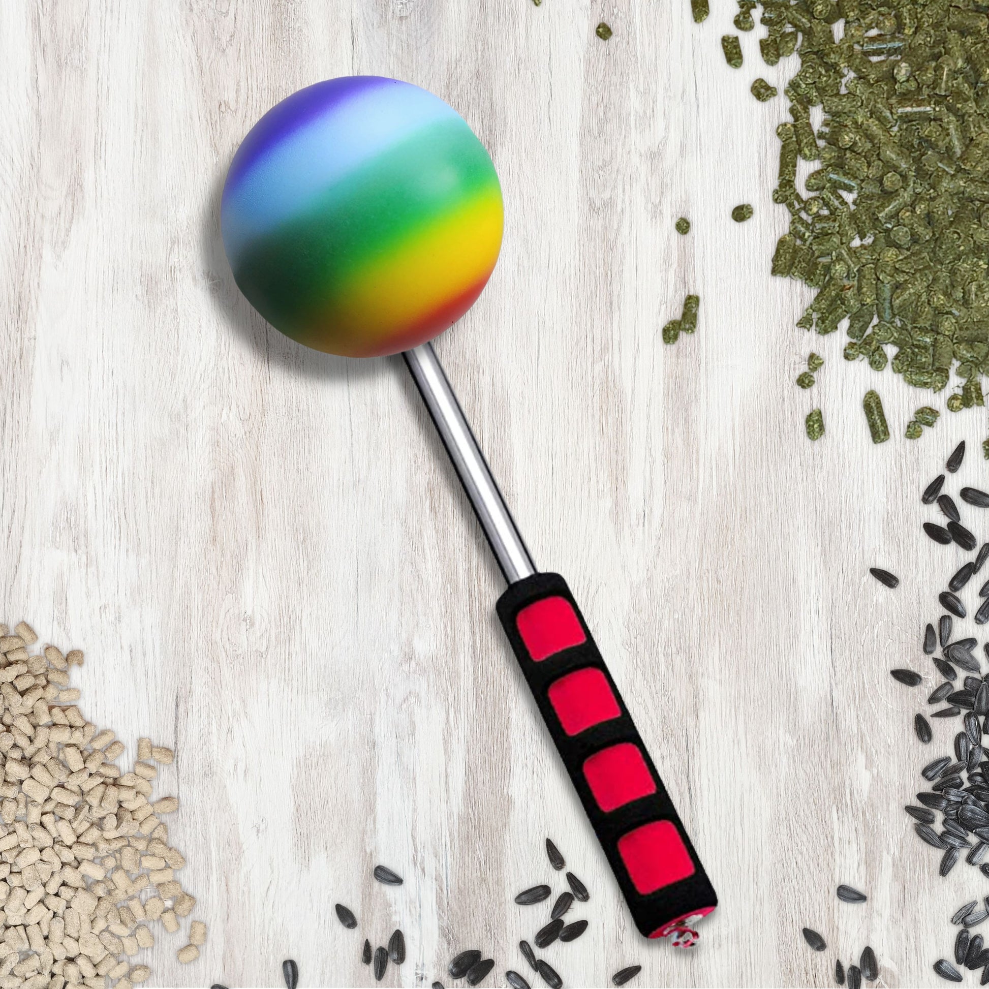 The SKE Telescoping Target is a valuable tool for every equine clicker trainer, and this rainbow clicker set includes a FREE clicker with a rainbow wristband!